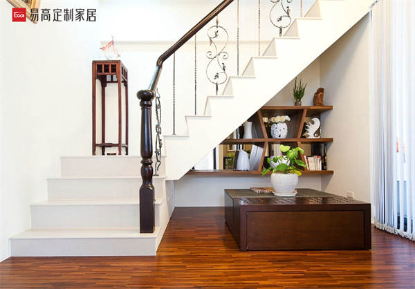 有一些戶型會帶有閣樓,復(fù)合的戶型也會有樓梯,樓梯的下方會有一大片的空余位置,這些地方空余著會十分浪費。樓梯下的空間可以定制一個收納柜,收納柜上方可以放置裝飾品或者書籍,下方可以做成封閉式的收納柜,可以收納各種雜物,還可以藏起來,看不見,整個空間既不會浪費,還看起來整潔舒適。