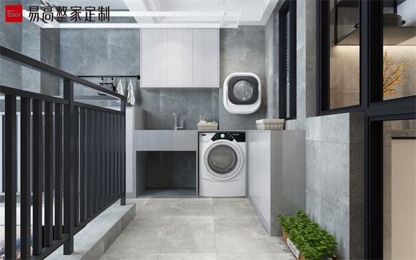 定制收納柜加上內嵌式洗衣機柜或者拖把池,可以收納一些家務用品等。不用擔心雜物亂放影響整體的美觀性。都收納在柜子里視覺效果更加美觀,設計時還可以放底板上放置防水墊,以免水珠侵蝕定制柜的板材。