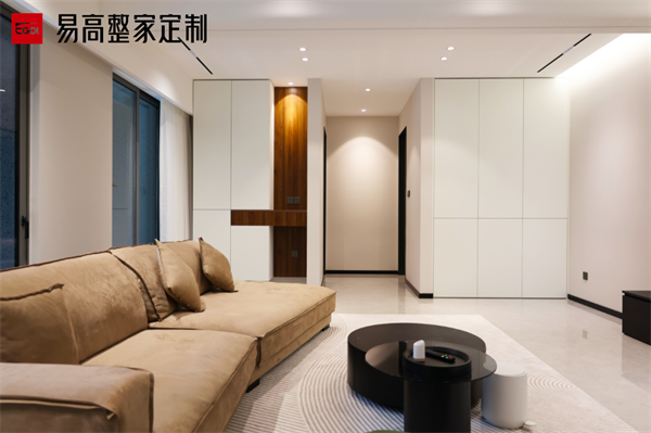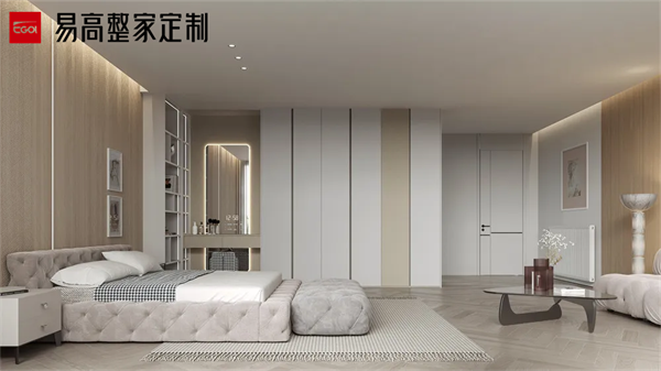 細(xì)節(jié)處理直接影響衣柜的美觀和實(shí)用性。例如,頂封板應(yīng)內(nèi)置,避免外露;左右封板應(yīng)與柜體同厚,避免太寬影響美觀;為了整體美觀,柜體露出的側(cè)面應(yīng)加門板同色的見光板;柜門建議使用極簡的長拉手或無拉手設(shè)計(jì),如內(nèi)置反彈器,以體現(xiàn)極簡風(fēng)格。