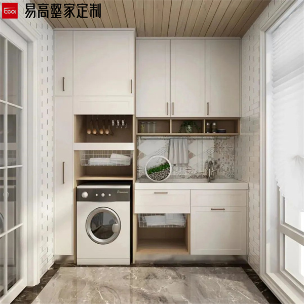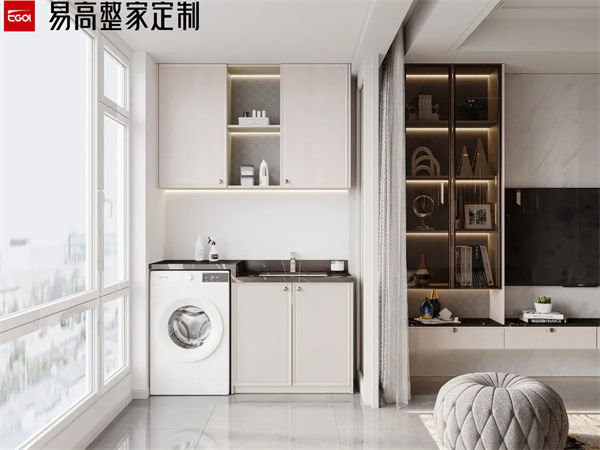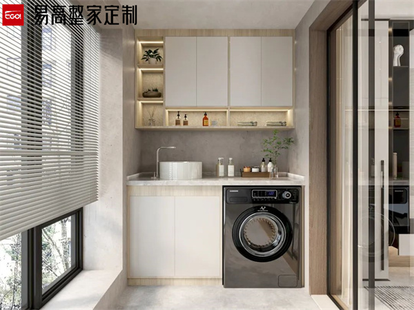陽臺屬于長期風(fēng)吹日曬的區(qū)域,做陽臺柜一定要注意抗曬和防水問題。避免長期陽光直射導(dǎo)致柜門發(fā)黃、開裂等。同時,陽臺柜的臺面也要做好防水處理,避免水漬滲入導(dǎo)致?lián)p壞。洗衣柜的材質(zhì)要選擇防潮性能好的材料,比如磚砌洗衣臺或石英石臺面等,這些材料不僅防腐耐潮,還能抗曬。