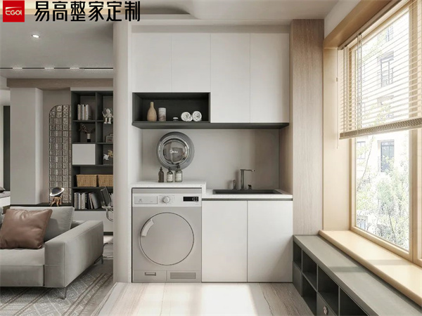 設(shè)計一個好的陽臺柜首先離不開精準(zhǔn)的尺寸把控。既不會顯得占用空間,又能確保足夠的收納容量,可以根據(jù)陽臺的大小和洗衣機的尺寸來規(guī)劃洗衣柜的尺寸。