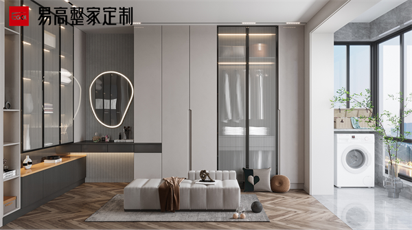 衣帽間的材質(zhì)選擇要注重環(huán)保性和耐用性。板材應(yīng)選擇環(huán)保等級高的ENF級或E0級板材;五金配件要選擇質(zhì)量好的滑軌、鉸鏈等,確保使用壽命;玻璃可選擇透明或磨砂玻璃,增加空間通透感。