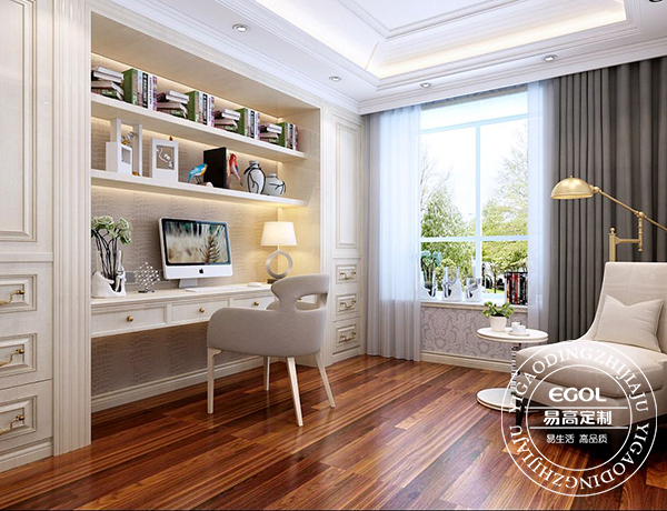 書房,是人們在休息娛樂之外的,又一個生活場所,因為其特有的功能屬性就要求書房應(yīng)該是一個安靜的環(huán)境,所以當我們在裝修自家書房的時候,就應(yīng)該的采用不同的方式來體現(xiàn)其安靜的氛圍。但是需要注意的是,過度的設(shè)計只會讓整體的書房不僅不能體現(xiàn)出安靜的氛圍,反而讓書房顯得冗雜而擁擠。所以在對于書房設(shè)計時,還是需要把握一個度。下面易高小編就來詳細的為大家介紹一下書房設(shè)計注意的幾點事項。