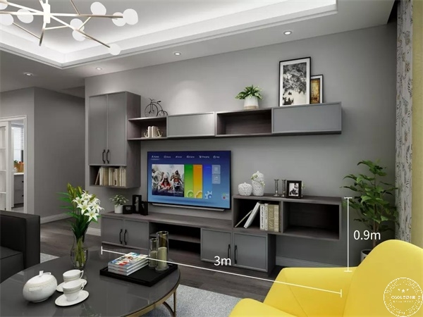 客廳的裝修關鍵詞是寬敞、實用,可以通過打造電視墻儲物柜擴展空間,給人清爽、明亮的感覺。