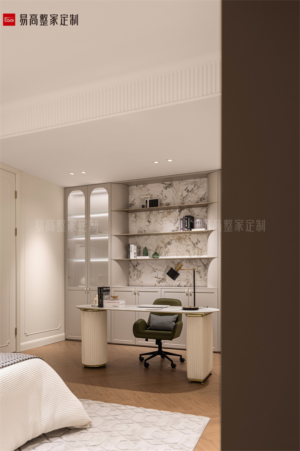 整個空間被溫柔和靜謐包裹,門墻柜一體化美學(xué)設(shè)計(jì),精致雕花工藝和現(xiàn)代設(shè)計(jì)完美結(jié)合,展現(xiàn)輕法式的獨(dú)特韻味。輕盈、隨意的生活方式,帶來與生俱來的親近感,讓居住者在快節(jié)奏生活中得到久違的放松。