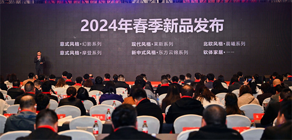 會議現(xiàn)場發(fā)布了2024春季新品,六大系列新品以獨特的設(shè)計理念、精致工藝與創(chuàng)新材質(zhì)的融合,詮釋潮流家居新風尚;同步推出“整家V店”全新店態(tài),以“小而精”的家裝渠道店豐富店態(tài)模式,進一步提升客戶體驗感,助力大家居戰(zhàn)略落地。