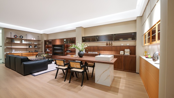 與會(huì)嘉賓在工作人員的帶領(lǐng)下,移步700㎡高定展廳品鑒五大系列新品。此次新品在產(chǎn)品功能、空間設(shè)計(jì)、工藝創(chuàng)新、環(huán)保材料應(yīng)用等多維革新,以獨(dú)特魅力重塑高端生活內(nèi)涵,令現(xiàn)場(chǎng)觀摩嘉賓贊不絕口。