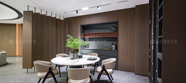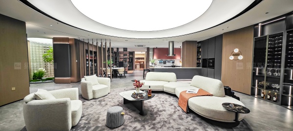 借鑒意式建筑的拱形線條美學(xué),以極簡大氣的圓弧造型進行整體鋪陳,形成親切的天然違和感,促進空間與人的親密互動,提升整體視覺層次感和設(shè)計張力。