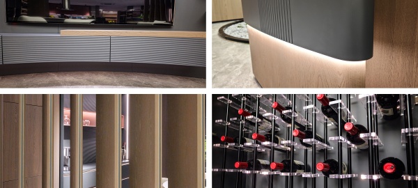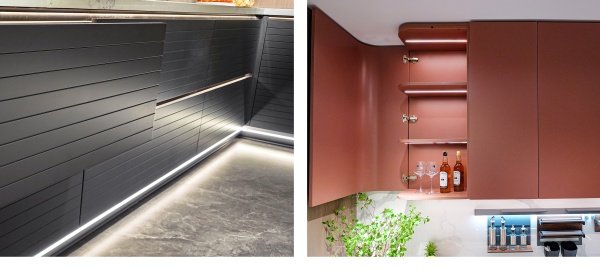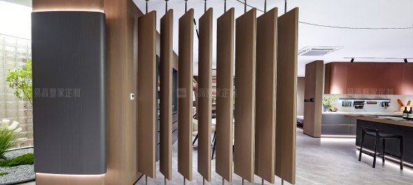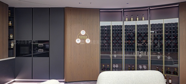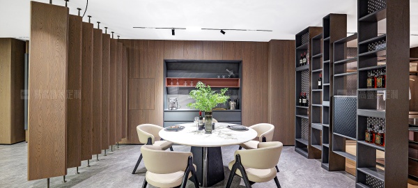 通透的屏風(fēng)和開放格設(shè)計相輔相成,呼吸感穿梭其中,生動演繹意式美學(xué)的優(yōu)雅與從容。線性燈帶沿著柜體輪廓隨性流淌,明暗交匯間,無限放大光影美感。